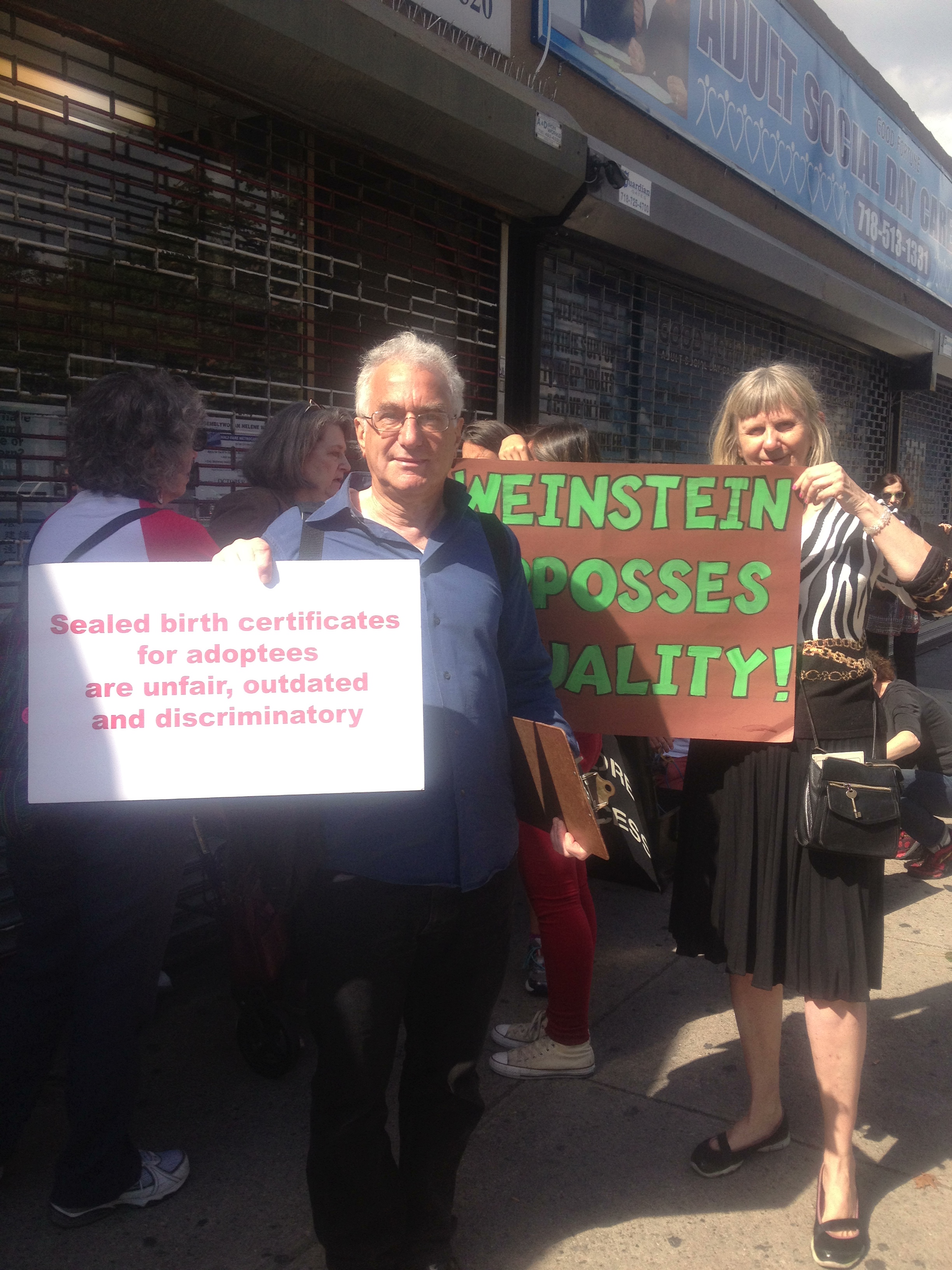 Brooklyn New York Adoptee Rights Protest at Helene Weinstein’s Office b