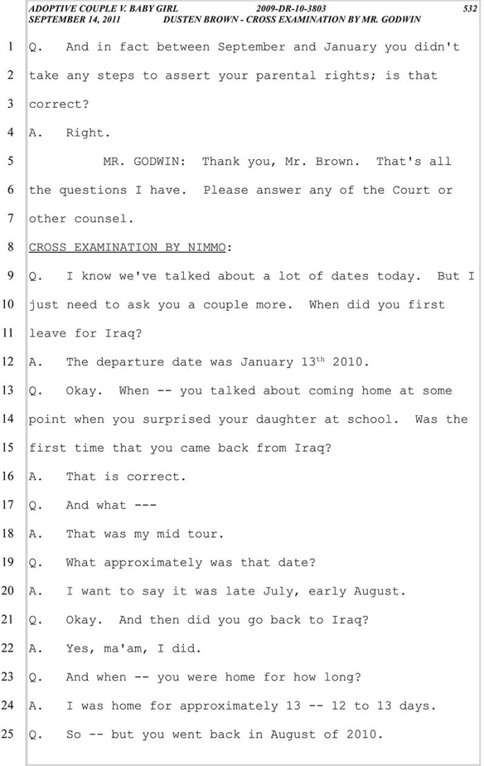 on "doptive couple v baby girl trial transcripts p 532"